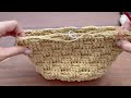 説明文底板の編み付けはコチラの動画を参考にして下さい。https://youtu.be/IrB_fYRbqRs両端のカーブになっている部分の5穴に3目ずつこま編み。両サイドの真っ直ぐな所の9穴には2目ずつこ...