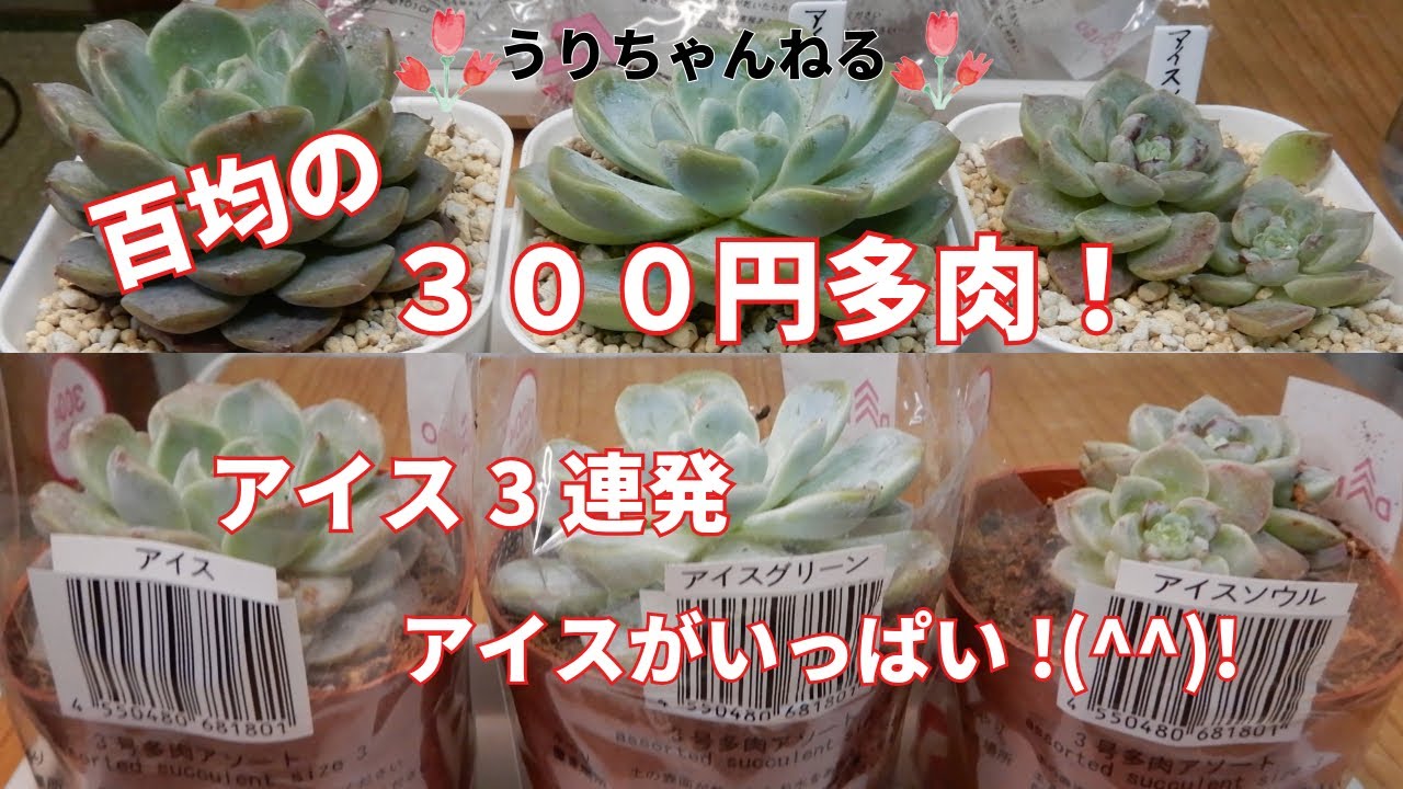 | タイトル | [多肉植物Ⅴlog302]百均の300円多肉をお迎えしました❣アイス、アイス、アイス3連発!(^^)! |