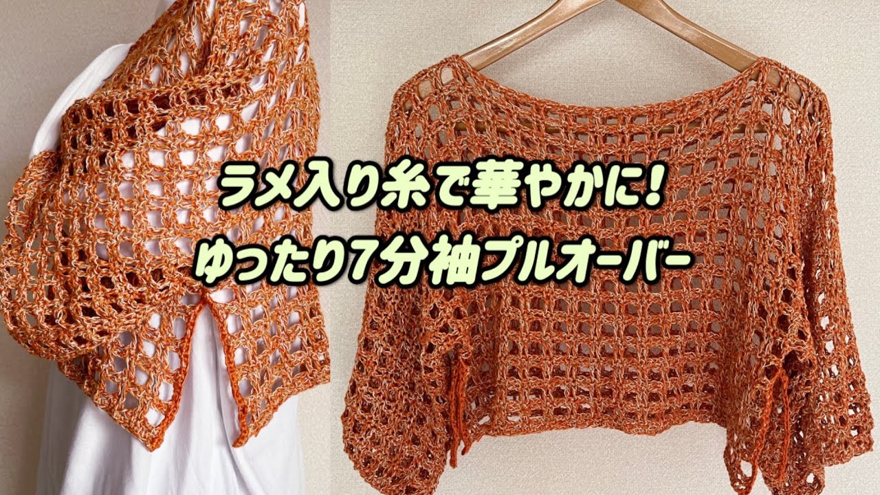 【かぎ針編み】とじはぎなしの軽やかプルオーバー⭐️100均毛糸で初心者さんにも✨爽やかなみかん色とラメが素敵⭐️ – 編み物 ふわふわ