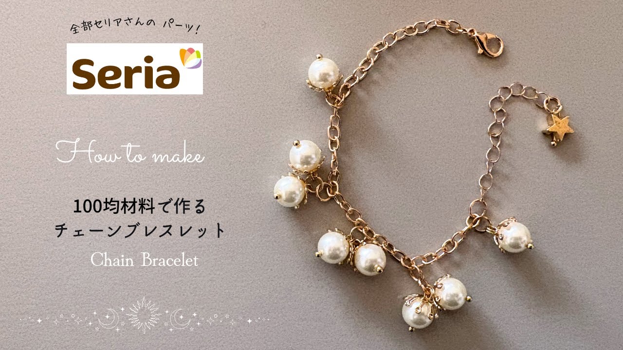 タイトル【100均で学ぶ】アクセサリー作り|すべてセリア材料でできる|上品ガラスパールがゆれる♪チェーンブレスレットの作り方