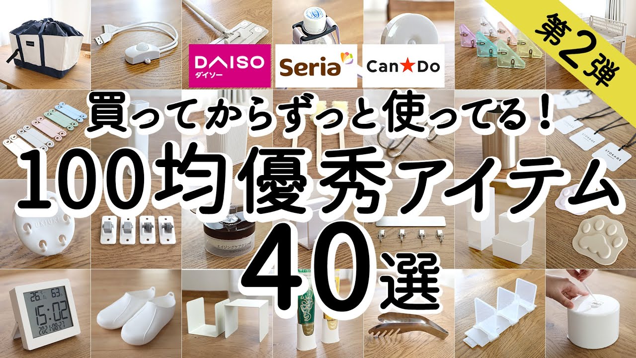 タイトル【100均ベストバイ】1年以上使ってる100均神アイテム40選!長く使えて優秀な家事ラク便利グッズ・収納・キッチングッズ・掃除・照明 / ダイソー・セリア・キャンドゥ