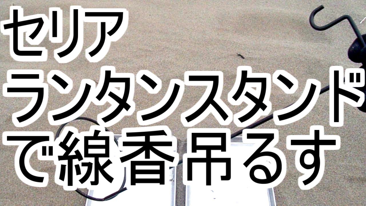 タイトル【セリア】100均☆キャンプDIY★ランタンスタンドで蚊取り線香を吊るす編★アウトドア☆虫除けハッカ油スプレー☆LEDオイルランタン☆釣りキャンプ飯BBQ料理☆ダイソー