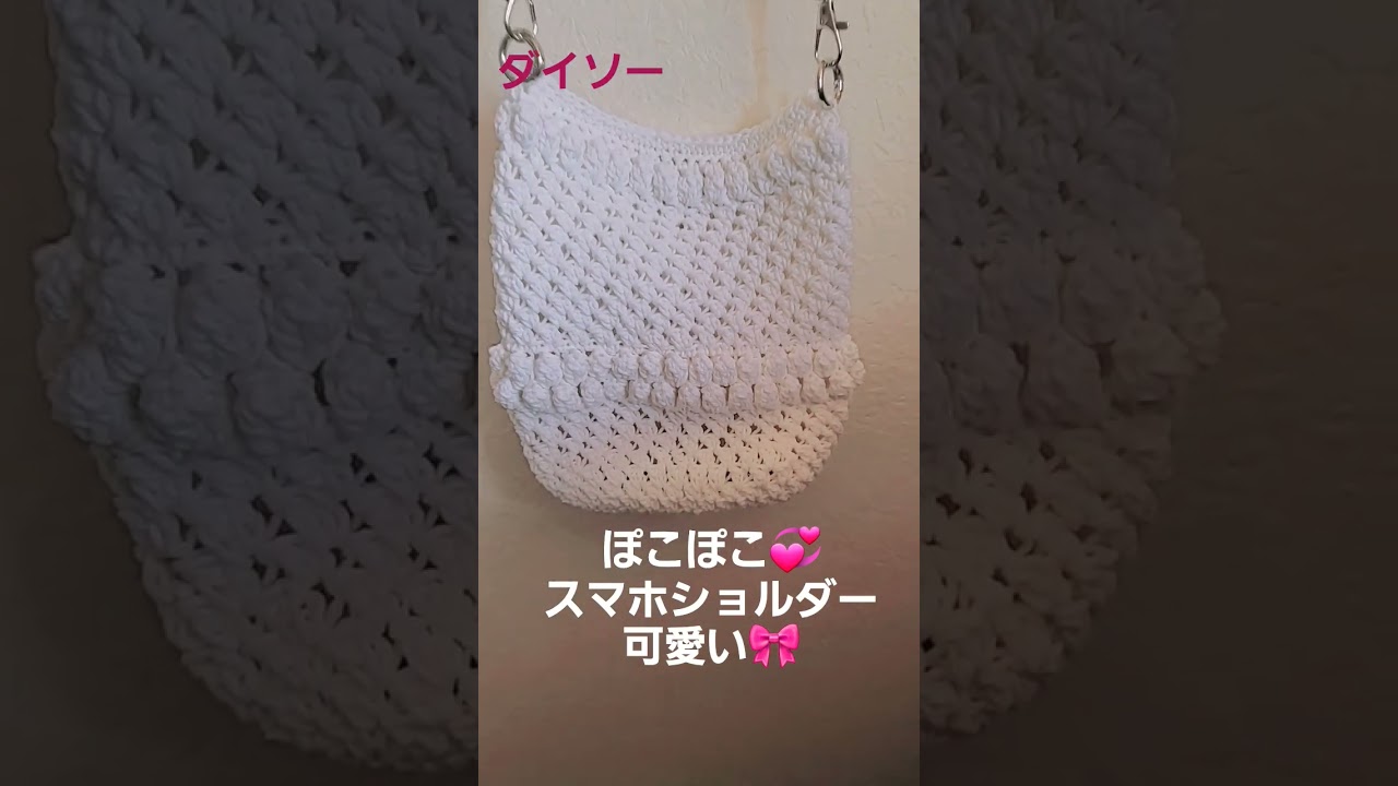 ダイソーぽこぽこ💞スマホショルダー可愛い🎀#かぎ針編み #編み物 #かわいい #ダイソー #ハンドメイド #パプコーン編み #100均 #可愛い#スマホショルダー#夏 – ここママ編み物チャンネル