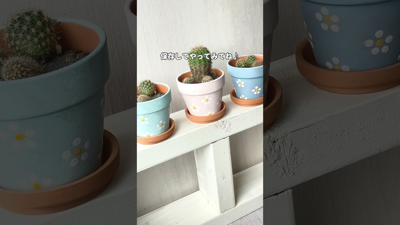 タイトル【100均DIY】絵心ゼロでもOK!綿棒とスポンジで作る北欧風おしゃれプランター#acrylicpainting #shorts#トールペイント