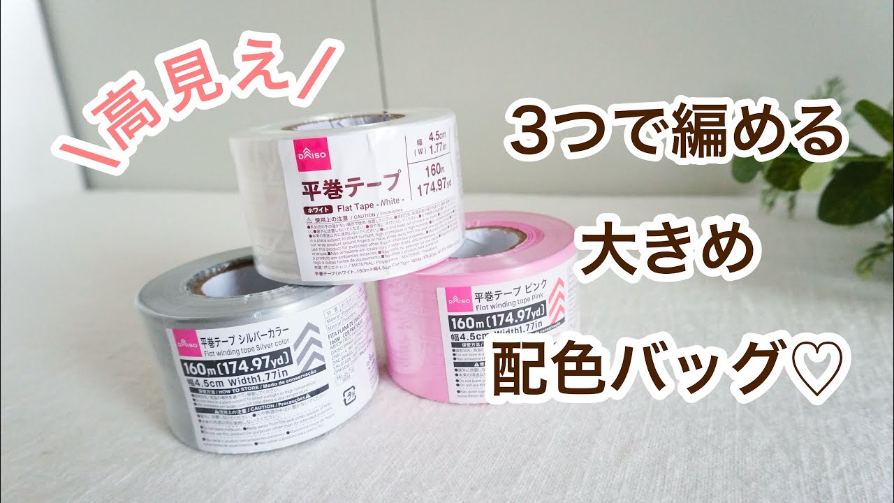 タイトル【細編みだけ簡単!】ダイソー平巻テープ3個で編める!水筒も入る大きめシンプルバッグ♡かぎ針編みバッグ crochet bag tutorial