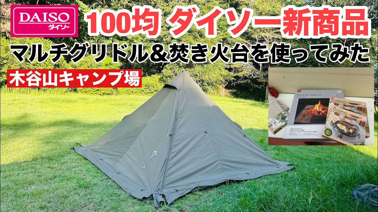 タイトル【百均ダイソー】キャンプ新商品マルチグリドル&焚き火台を使ってキャンプをしてみたら?【木谷山キャンプ場前編】