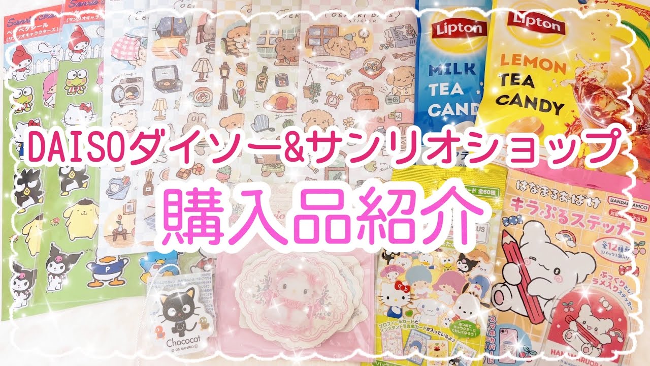 タイトル【購入品紹介♡】DAISOダイソー購入品|サンリオ購入品|サンリオ|シール大量|キラキラシール|新商品|プロフィールカード|シール帳|HAUL|