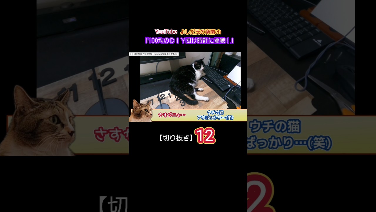 | タイトル | 【切り抜き⑫】「ウチの猫…アホばっかり(笑)」 100均のDIY掛け時計を作る! #切り抜き #diy #三毛猫 #ハチワレ #cat #かわいい #shorts |