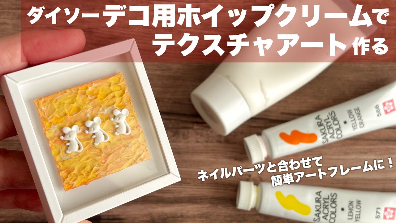 | タイトル | 【DIY】デコ用ホイップクリームでテクスチャアート作る【ダイソー】 |
