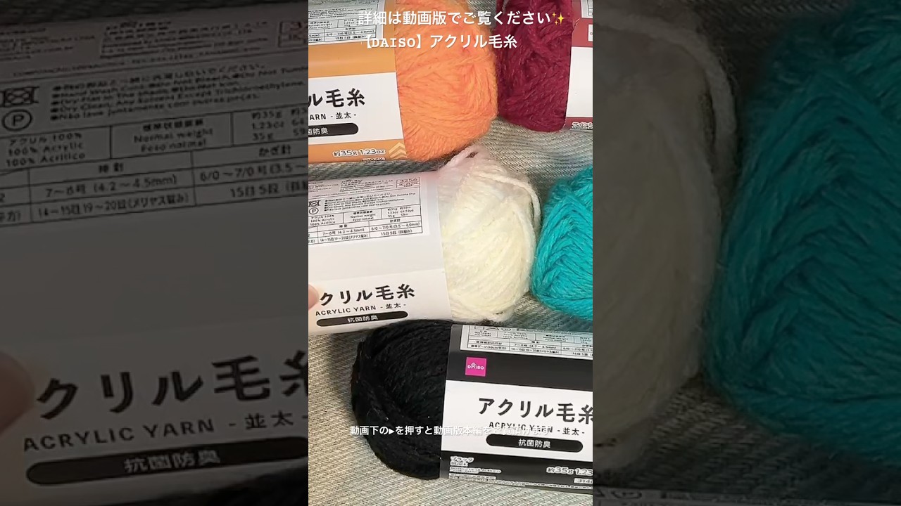 タイトル【DAISO】アクリル毛糸・東レ、抗菌消臭【購入品紹介・100均毛糸】#毛糸 #あみもの #編み物 #購入品紹介 #購入品 #100均毛糸 #百均