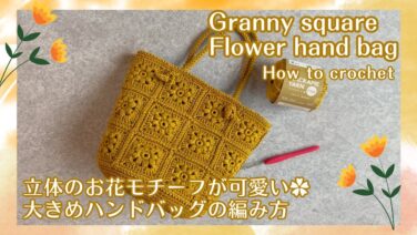 [セリア100均糸で立体フラワーメッシュハンドバッグの編み方] #100均 #かぎ針編み #bag #crochet #seria #花 #flower #3d #motif #mesh – チョコマル ハンドメイド工房